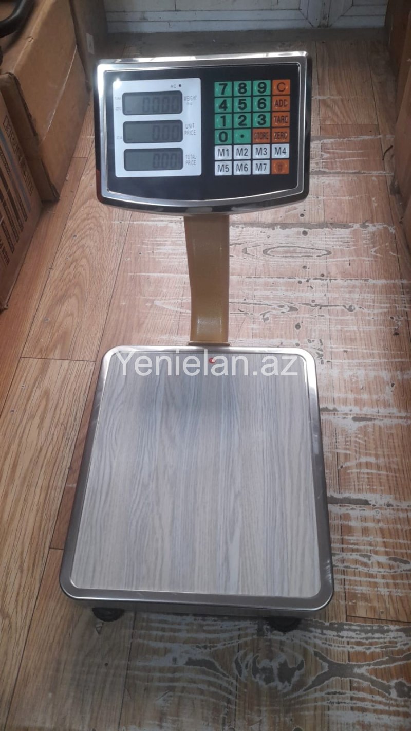 Elektron tərəzi - Model qalın stenkalıdır. 60 kq-a qədər çəki çəkə bilir. Minimum çəki 400 qr-dır. Ölçmə addımı 20 qr-dır. Sadə akkumulyatorla işləyir. Dəstində adapteri də var. Bütün detalları qalındır. Əksər hissələri paslanmayan metaldır. Yeni, keyfiyyətli və zavod istehsalıdır. Başqa çeşidlər də var: ucuz və bahalı. Rayonlara və şəhər daxili çatdırılma xidməti də var. Sifarişləriniz üçün əlaqə saxlayın. Tel : 051/996-96-60.