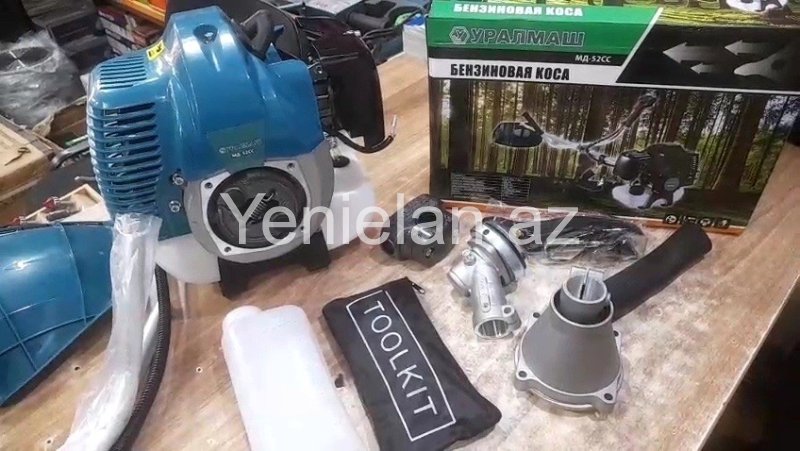 Uralmaş firmasının benzinlə işləyən otbiçənidir. Dövriyyəsi 1 dəqiqədə 21000-dir. 6,5 kilovat gücü var. Model standart ölçülərə malikdir. 28 mmlik turbalı, 9 diş kardanlıdır. Cüt purjin 4 qulaq starterlə təchiz olunub. Çox rahatlıqla işə salmaq olur. İstifadəsi çox asandır. Bütün detalları qalındır. Üstündə 1 ədəd mişar və jilkası da var. Yeni, keyfiyyətli və zavod istehsalıdır. Başqa çeşidlər də var: ucuz və bahalı. Rayonlara və şəhər daxili çatdırılma xidməti də var . Sifarişləriniz üçün əlaqə saxlaya bilərsiniz. Tel : 051/996-96-60