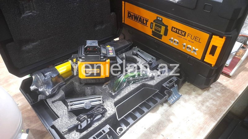 Dewalt firmasının yaşıl işıqlı lazer urovenidir. Yüzlük ölçən aparatdıır.Model 16 xəttli, 4d-dir. Hər tərəfə vurur. Həm polda , həm tavanda istifadə etmək olur. Pola da, tavana da sıfır verir. Üzərində led ekranı var. Burada öz batareyasının həcmini göstərir. Sensordur. Üzərində pultu var. Uzaq məsafədən də idarə etmək olur. Komplektində panel ayağı, 3 ayağı, böyük ayağı, 2 ədəd litium ion daşı, adapteri, eynəyi var. Bir sözlə istifadəsi komplektində hər bir detalı var. 16 m məsafədə 32 diametrdə istifadə etmək olar. Düzlüyü 16 m- də 0,2 mm-dir. Yeni, keyfiyyətli və zavod istehsalıdır. Başqa çeşidlər də var: ucuz və bahalı. Rayonlara və şəhər daxili çatdırılma xidməti də var . Sifarişləriniz üçün əlaqə saxlayın. Tel : 051/996-96-60.