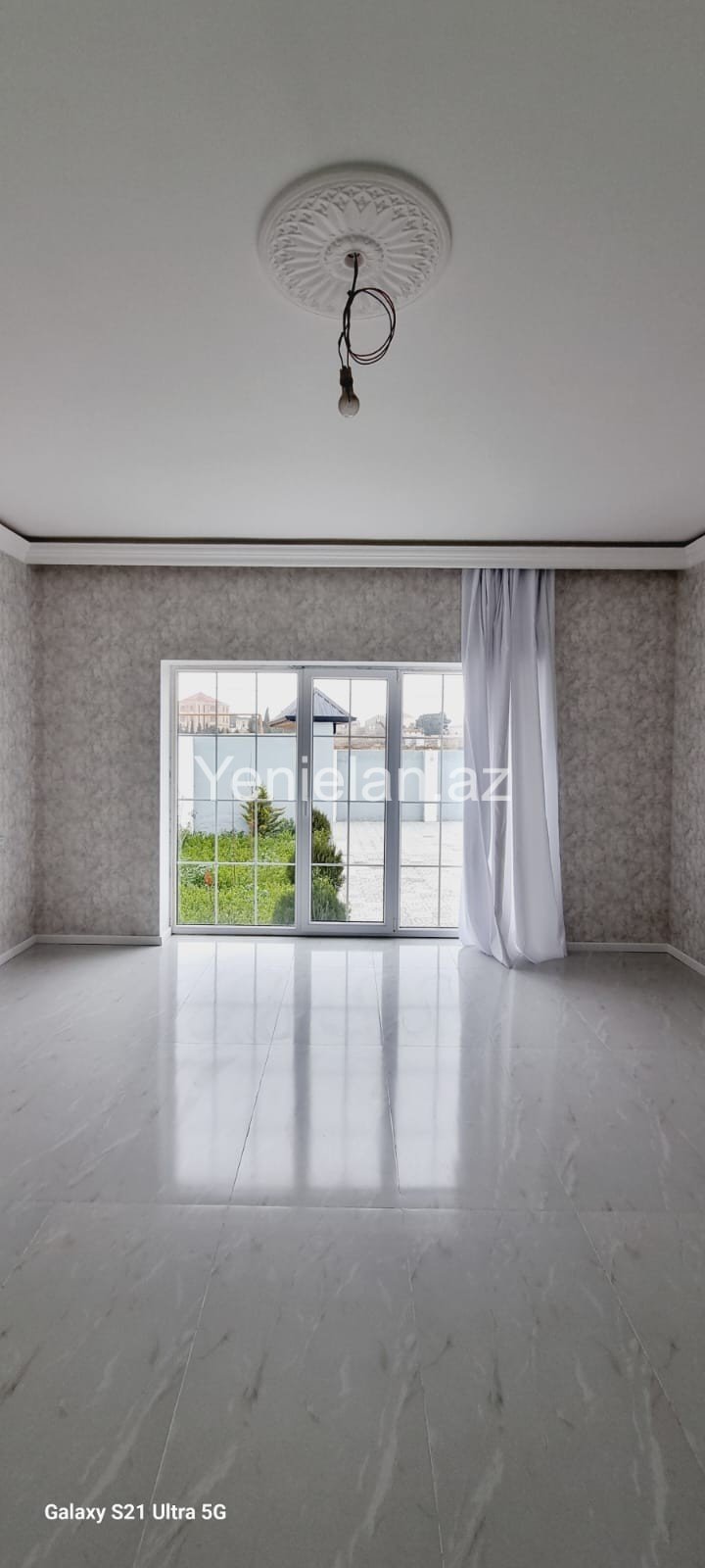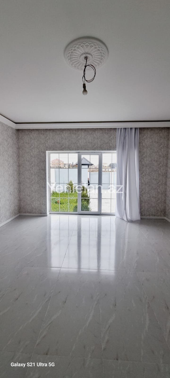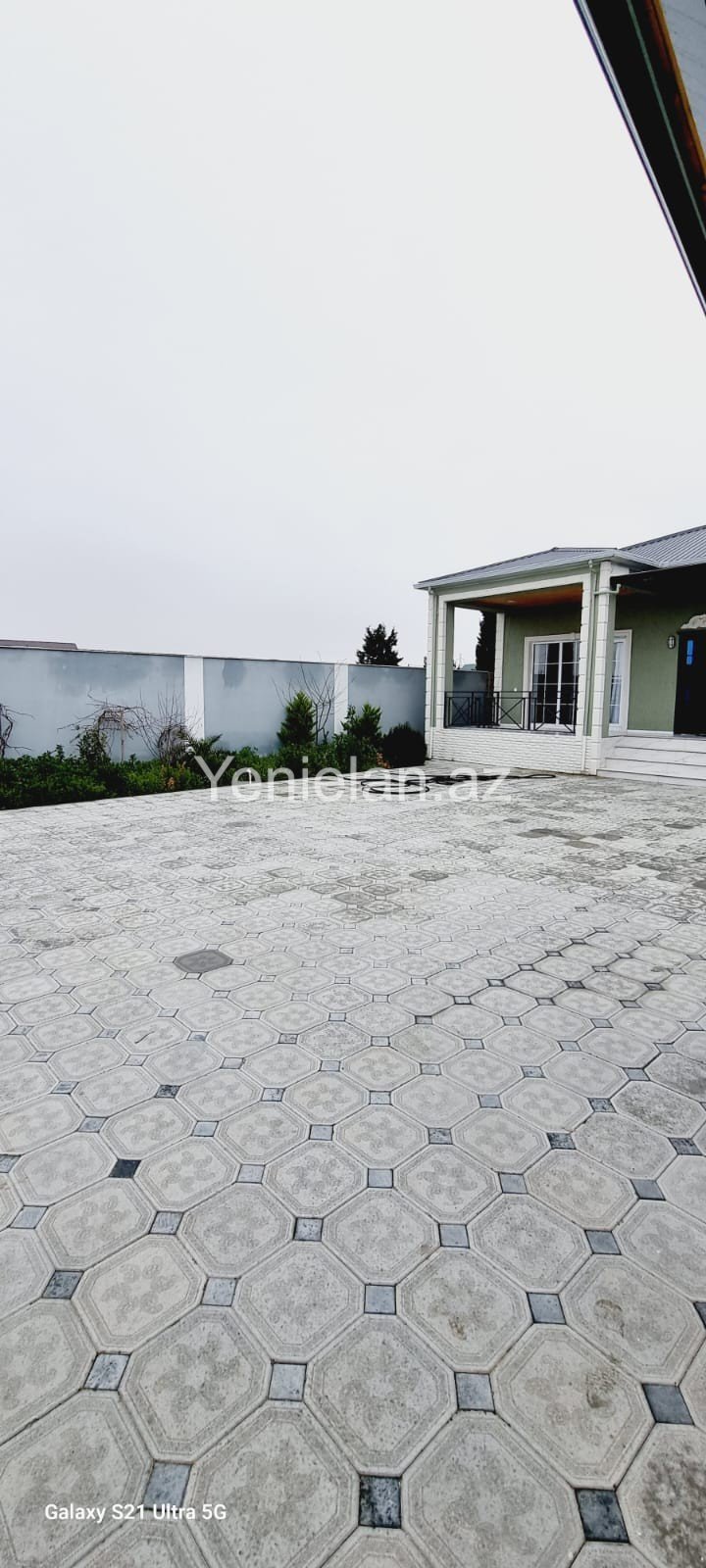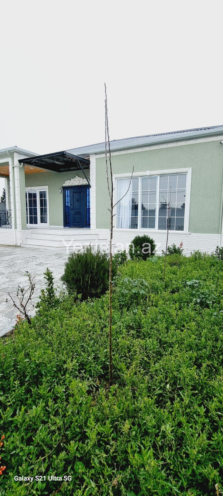 Həyətində müxtəlif növ dekorativ və meyvə ağacları, pultla idarə olunan jalüz qapısı var.