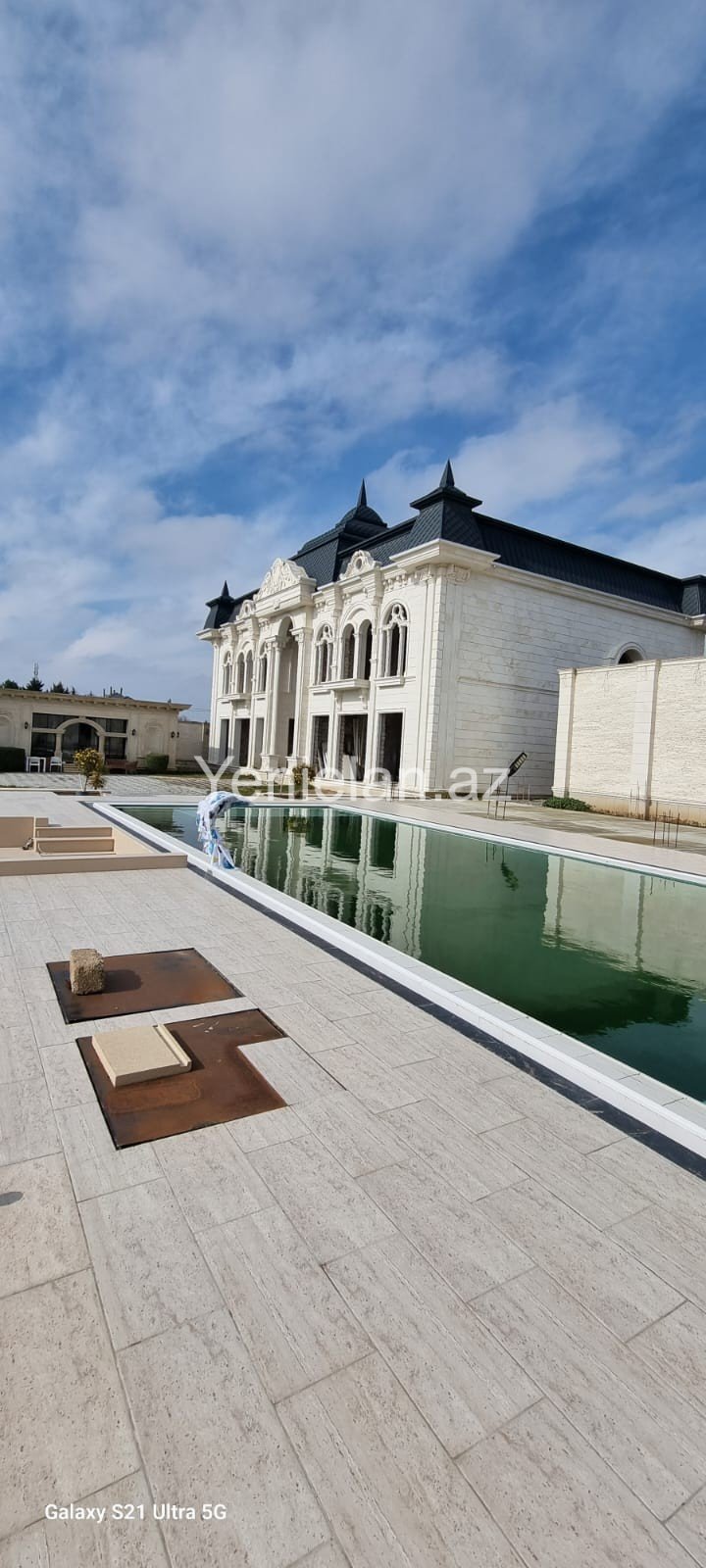 Həyəti tamet daşlarla döşənilib.