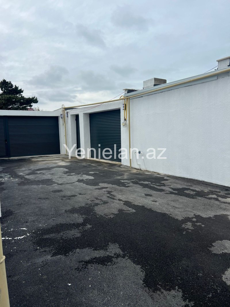 Həyətində hovuzu, pultla idarə olunan jalüz qapısı, dekorativ ağacları var.