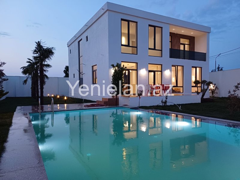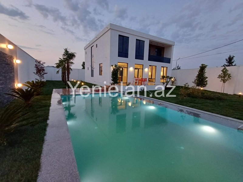 Həyətində : filtirli hovuzu , yaşıl zonası , 2 maşınlıq qarajı , dekorativ ağacları vardır..
